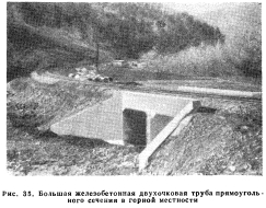 ДРУГИЕ ТИПЫ ТРУБПрежде применялись каменные или деревянные трубы прямоугольного сечения, а также каменные арочные трубы. Многие из этих каменных труб находятся в эксплуатации и сейчас. ![]() Современные трубы прямоугольного сечения сооружают из антисептированной древесины и железобетона, арочные трубы — из волнистого железа и железобетона. Антисептированные деревянные трубы прямоугольного сечения. Эти трубы обычно сооружают из пропитанных брусьев, размеры которых определяются величиной отверстия, высотой насыпи, величиной временной и постоянной нагрузок. Среди имеющихся на рынке патентованных типов труб можно указать на конструкцию, которая изготовлена из антисептированной клееной древесины. Отдельные секции позволяют собирать одноочковые и многоочковые (до четырех очков) трубы прямоугольного сечения. В этой конструкции предусмотрено переплетение и взаимное перекрытие отдельных волокон, составляющих вертикальные и горизонтальные элементы трубы. Арки из волнистого железа. Сборные оцинкованные металлические арки из толстого волнистого железа, которым придана определенная кривизна, применяют для различных целей, в том числе для смены облицовки и в качестве арматуры старых труб из каменной и бетонной кладки. Сборные элементы арок выпускаются различной длины и четырех стандартных ширин; в продаже имеются плоские плиты и арки радиусом от 76 см и более. Применение арок этого типа требует устройства соответствующих устоев или фундаментов из плит. Железобетонные прямоугольные трубы. Железобетонные прямоугольные трубы (рис. 35), бетонируемые на месте, уже давно применяются на железных дорогах. Трубы этого типа можно сооружать одноочковыми и многоочковыми, им можно придавать различные размеры. Применение железобетонных прямоугольных труб целесообразно для отверстий до 3,65 м при высоте стенок до 3 ж и сравнительно низких насыпях. С увеличением отверстия и высоты насыпи выгодность их уменьшается. В этих условиях, особенно при высоких насыпях, более экономичными, как правило, оказываются круглые трубы. В современных конструкциях круглых труб, бетонируемых на месте, нижней части трубы часто придают плоскую форму, увеличивая толщину стенок по бокам и оставляя ее небольшой у лотка, где перерезывающие силы относительно невелики. Это мероприятие имеет своей целью обеспечить более равномерное опирание трубы и распределение нагрузки на большую площадь. БАРЫКОВА Н.Г., ГЛУЗМАН И.С. АМЕРИКАНСКАЯ ЖЕЛЕЗНОДОРОЖНАЯ ЭНЦИКЛОПЕДИЯ — М.: ТРАНСЖЕЛДОРИЗДАТ, 1959. |