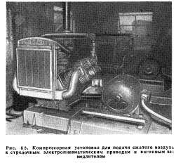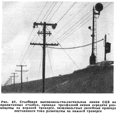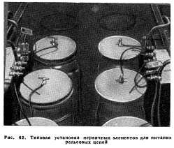 ЭНЕРГОСНАБЖЕНИЕ УСТРОЙСТВ СЦБПотребление энергии. Типы и емкость первичных элементов. Питание переменным током. Питание переменным током с резервом от батарей. Буферная система питания. Типы аккумуляторных батарей. Питание переменным током с резервом от первичных элементов. Энергоснабжение централизаций. Энергоснабжение прочих устройств СЦБ. Линии передачи для устройств СЦБ. Применение статических конденсаторов. Столбовые линии СЦБ. Столбы и траверсы. Изоляторы Управление устройствами СЦБ и их контроль осуществляются в современных системах СЦБ посредством электрической энергии. Пневматическая энергия применяется для электропневматических сигналов, стрелочных приводов и вагонных замедлителей. Перевод стрелок и сигналов в механических централизациях осуществляется непосредственно сигналистами. Сжатый воздух для приведения в действие пневматических приводов подается компрессорами, приводимыми в действие электродвигателями. Производительность компрессоров определяется по объему работы установки, кроме того, устанавливаются воздухосборники, что позволяет компрессорам работать неполные сутки. Электрическая энергия постоянного тока подается батареями или выпрямителями; последние питаются переменным током. Для питания аппаратуры СЦБ переменного тока используются электросети общего пользования с установкой местных трансформаторов для получения необходимого напряжения. Согласно основному принципу устройств СЦБ прекращение подачи энергии или обрыв провода в цепи управления, а также в сигнальной цепи должны повлечь за собой появление запрещающих показаний на одном или нескольких сигналах. При этом почти во всех случаях питания устройств СЦБ от внешних источников переменного тока предусматриваются резервные источники питания, вводимые в действие при прекращении подачи энергии от основного источника и позволяющие сохранить непрерывность действия устройств СЦБ. Это требование не является обязательным на участках с электрической тягой, где прекращение подачи энергии связано с остановкой движения и где в таких случаях отпадает необходимость в работе устройств СЦБ. Потребление энергии. С точки зрения питания аппаратура автоматической блокировки может быть подразделена на три основные группы: путевые реле и их цепи, управляющие реле и их цепи, сигналы и сигнальные цепи. В рельсовой цепи электрическая энергия подается к двум рельсам одного конца рельсовой цепи, на другом конце которой включено реле. Для полного притяжения якоря современного путевого 4-ом реле постоянного тока необходим ток 78 ма и соответственно напряжение 0,312 в. Значительная часть подаваемой в рельсовую цепь энергии не доходит до релейного конца из-за утечки в балласте между рельсами. При сыром балласте на питающем конце необходима подача тока 200 ма или более при напряжении 0,65 в. При замыкании рельсовой цепи колесными скатами поезда ток возрастает, но только до определенной величины, обусловливаемой ограничивающим сопротивлением. Рельсовая цепь потребляет в год энергию от 3 до 5 квт-ч. В качестве линейных управляющих реле обычно применяются 500-ол реле, питаемые постоянным током напряжением 8 в, при 14 ма во время, когда блок-участок не занят поездом. Такая цепь ежегодно потребляет около 0,98 квт-ч. Для снижения этого потребления может 