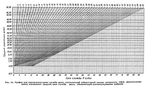 КОНСЕРВИРОВАНИЕ ДРЕВЕСИНЫЕжегодно американские железные дороги расходуют громадное количество лесоматериалов на содержание путей, зданий и оборудования. За пятилетний период, окончившийся в 1953 г., было пропитано всего 148 566 560 шпал, что составляет в среднем около 30 ООО ООО шпал в год, пропитываемых для смены на железнодорожных путях США. За это же время на всех шпалопропиточных заводах страны было пропитано около 14 500 мг переводных брусьев. Совершенно очевидно, что, кроме шпал, дорогам требуется огромное количество бревен и свай для постройки и ремонта причалов, эстакад, мостов и зданий. Анкета по шпалам, разосланная Комитетом AREA в 1951 г., показала, как это видно из полученных ответов, что на 70 железных дорогах 1-го класса протяжение эстакад составляло всего 2780 214 лг, или 2 780 км. Кроме того, железным дорогам нужен лес на сваи, столбы для оград, вагонные брусья и для многих других целей. Значение проблемы продления срока службы всех этих лесоматериалов станет очевидным, если учесть, что стоимость лесопродуктов составляет самую большую статью расхода в содержании железнодорожных обустройств. Пропитка древесины является единственно практически возможным средством предохранения ее от гниения, от порчи насекомыми или морским древоточцем. Вместе с тем широко применяется и обработка леса для предохранения его от возгорания. Одни и те же химические составы обычно содержат вещества, одновременно предохраняющие древесину от гниения и порчи термитами. Обработке для предохранения от возгорания подвергаются балки и стропила паровозных депо и других зданий, где в связи с характером их использования может возникнуть опасность пожара. Продление срока службы шпал. К концу 1953 г. на железнодорожных линиях первой категории в США и Канаде протяжением 505 306 км было уложено всего 1136 230 346 шпал. Для ежегодной смены требуется в США 29 409 740 шпал и в Канаде — 7 000 000 шпал. Более 98% шпал, укладываемых в США для замены негодных, пропитаны в соответствии с типовой технологией пропитки, рекомендованной AREA. Примерно такой же процент пропитанных шпал укладывается на железных дорогах Канады. Количество сменяемых шпал на железных дорогах США за пятилетний период, закончившийся в 1953 г., составило в среднем 56 шт. на 1 км пути в год. Иначе говоря, за тот же пятилетний период было заменено около 3% всего количества шпал, лежащих в пути. Из этих цифр можно установить, что средний срок службы шпал на железных дорогах США составляет около 30 лет. Гниение шпал стало иметь менее важное значение. Пропитка шпал для предохранения от гниения оказалась настолько эффективной, что в настоящее время на хорошо содержимом пути лишь незначительный процент шпал выходит из строя по гнилости. Т. А. Блэр (Т. A. Blair), главный инженер железной дороги Санта-Фе, в своем докладе, сделанном в 1951 г. на заседании Американского общества по консервированию древесины, привел результаты проведенного управлением этой дороги исследования причин выхода шпал. Общее количество шпал, изъятых из пути в 1950 г., составило 80 362 шт. Причины замены этих шпал были тщательно изучены; их можно подразделить следующим образом: ![]() Таким образом, пропитанные шпалы выходят главным образом вследствие механического износа, а не по гнилости. Более того, пропитка уменьшает механический износ шпал и количество изломов, так как здоро