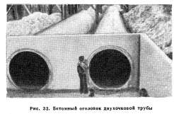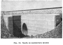 КРУГЛЫЕ ТРУБЫКруглые трубы бывают двух типов: жесткие и гибкие. Жесткие трубы обладают большей начальной прочностью, чем гибкие. Поэтому труба может выдержать высокое внешнее давление, не подвергаясь разрушительным деформациям. Работа сооружения находится в меньшей зависимости от равенства вертикального и горизонтального давлений, хотя для обеспечения устойчивости земляного полотна и неизменности оси трубы в плане следует добиваться равномерного уплотнения основания трубы и слоев насыпи, примыкающих ко всем ее частям. Гибкие трубы обладают относительно малой начальной прочностью. Способность их воспринимать вертикальные нагрузки в значительной степени зависит от оказываемого засыпкой сопротивления горизонтальным деформациям трубы. Несмотря на то, что гибкие трубы легко деформируются без появления в них дефектов, весьма желательно производить уплотнение насыпи таким образом, чтобы, по возможности, уменьшить величину деформаций. На рис. 33 показан оголовок двухочковой бетонной трубы, а на рис. 34 — оголовок трубы из волнистого железа. В большинстве случаев дефекты, появляющиеся в круглых трубах, относят за счет перемещений насыпи, хотя часто исследования указывают, что причиной этих повреждений служат недостатки основания. Перемещение откосов насыпи, особенно в местах сопряжения старой, устоявшейся насыпи со свежим грунтом при уширении полотна, иногда вызывает раскрытие стыков труб. В подобных случаях разошедшиеся звенья труб можно стянуть болтами или муфтами. Однако гораздо более важными мерами в этих условиях являются: тщательная подготовка основания под трубу, выбор соответствующего грунта для засыпки и применение правильных методов ведения последней, хорошее уплотнение засыпки в непосредственной близости от трубы. Эти меры принимают и при укладке гибких труб со сболченными стыками. ![]() ![]() На железных дорогах широко применяют следующие пять типов круглых труб: керамические, деревянные, чугунные, железобетонные и из волнистого железа. Керамические глазурованные трубы высокой прочности. Керамические трубы, предназначенные для укладки под насыпями, имеются диаметром от 15 до 91 см. В этом диапазоне трубы меньшего диаметра применяют для подземных дренажей и канализации предприятий; трубы диаметром больше 46 см иногда используют для пропуска наземных вод под насыпями. Благодаря невысокой стоимости и простоте обращения эти трубы широко применялись в первый период железнодорожного строительства. В настоящее время они редко используются в качестве труб под насыпями, за исключением местностей с солончаковыми грунтами. Высокая сопротивляемость материала этих труб и слоя глазури химическим воздействиям кислот, щелочей и др. делает их пригодными для пропуска агрессивных и сточных вод, а также воды из горных разработок. Трубы из волнистого железа. Эти трубы в настоящее время являются общепризнанными и пользуются широким распространением на железных дорогах. Помимо обычных труб круглого сечения диаметром от 20 см до 2,44 м и больше, в настоящее время изготовляются секционные элементы, из которых можно собрать круглые трубы диаметром от 1,52 до 4,57 м. Из этих же элементов можно собирать трубы в виде мелкоразмерных арок. Размеры этих труб из волнистого железа (пролет х стрела подъема арки) — от 46 х 28 см до 1,83 х 1,12 ж. 