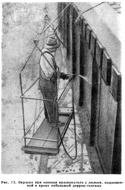 МЕТОДЫ НАНЕСЕНИЯ ПОКРЫТИЙРаботы по нанесению защитных покрытий необходимо выполнять тщательно, под компетентным надзором. В зимнее время в заводских условиях окраску следует проводить в хорошо вентилируемых и отапливаемых помещениях. Окраску в полевых условиях выполняют при благоприятной погоде. После очистки поверхности следует безотлагательно проводить огрунтовку. Это особенно важно, когда очистку выполняют пескоструйным аппаратом или механическими инструментами. В таких случаях слой грунтовки следует наносить в тот же день, чтобы конденсация влаги, происходящая в ночное время, не смогла привести к возникновению коррозии на свежеочищенных поверхностях. Окрашивать конструкции слоем неравномерной толщины неэкономно, так как необходимость возобновления окраски определяется износом мест с самой малой толщиной пленки. Наилучшие результаты при наименьшей стоимости дает равномерное нанесение слоя краски по поверхности, подготовленной надлежащим образом, при подходящих условиях для работы. Для достаточной защиты металла требуется минимальная толщина от 0,4 до 1,6 мм при окраске пластичными антикоррозийными составами или три слоя хорошей краски толщиной по 0,09—0,13 мм. Существуют покрытия типа обмазок на нефтяной основе, наносимые после предварительной очистки с помощью кистей или распылителей. Для обеспечения хорошей промазки всех неровностей поверхности применяют жесткие кисти с короткой щетиной. Обычно сначала наносят тонкий слой обмазки, который тщательно стирают щетками, после чего немедленно накладывают следующий слой требуемой толщины. При набрызгивании состав обычно растворяют в нефти или бензине, благодаря чему появляется возможность подавать его через шланг. В некоторых случаях после нанесения обмазки возникает необходимость дополнительного покрытия отдельных мест, где в результате размягчающего действия впитавшейся обмазки отслаиваются чешуйки ржавчины. Если по местным условиям требуется разжижить краску, то при выполнении этой работы следует руководствоваться указаниями изготовителя. Перед извлечением краски из тары ее следует тщательно перемешать. Каждый последующий слой при окраске наносят после полного высыхания предыдущего. При любом осмотре моста необходимо тщательно фиксировать состояние окраски, уделяя особое внимание местам, где наблюдается образование пузырей или шелушение. ![]() Некоторые дороги находят возможным, используя материалы осмотров, практиковать систему ежегодного возобновления окраски отдельных мест конструкции, чем обеспечивается постоянное содержание окраски в надлежащем состоянии. Такая система дает известную экономию за счет отказа от периодической окраски всего сооружения в целом. Рекомендовать определенные сроки возобновления окраски металлических сооружений невозможно. Эти сроки следует назначать, исходя из местных условий и данных о физическом состоянии того или иного сооружения, полученных при его осмотре. Окраска кистями. Основное требование, предъявляемое к обоим наиболее распространенным способам окраски— с помощью кистей и распылителей, заключается в применении хорошего инструмента и оборудования, в высокой квалификации рабочей силы. Типы и размеры кистей весьма разнообразны, но обычно пользуются плоскими кистями из черной китайско