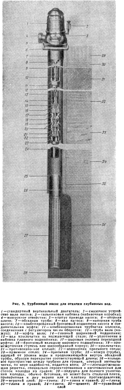 ОТКАЧИВАЮЩИЕ СИСТЕМЫ ФИРМЫ ЛЕЙН, РАСПОЛОЖЕННЫЕ В ГРАВИЙНОМ СЛОЕОткачивающая система фирмы Лейн, размещенная в гравийном слое и оборудованная сетчатым фильтром защитного типа, является наиболее совершенной установкой для подъема грунтовых вод. Ее основные преимущества следующие: а) удачное удержание природных песков без вовлечения их в гравийную оболочку во время интенсивной откачки: б) значительное увеличение удельной производительности, которое является результатом большего заглубления насосной головки, и снижение стоимости откачки; в) сокращение до минимума минеральных и других отложений на сетчатом фильтре, которые стремятся загрязнить отверстия и ведут к уменьшению производительности, что в свою очередь ведет к увеличению размеров насосной головки и повышению стоимости откачки; г) очень низкие скорости струи воды при поступлении в насос и на выходе из него, что обеспечивает высокий срок службы насосов. Метод, использованный при монтаже откачивающей системы фирмы Лейн, обеспечивает получение воды из водоносных песчаных пластов независимо от глубины. Там, где это необходимо, песчаный пласт подкапывается и заполняется гравием специальной гравийной машиной. Цементные колодцы. Фирма Лейн начала производить цементные водяные колодцы для защиты обсадных труб и предотвращения проникания нежелательных примесей. Целесообразность этого метода доказана тем фактом, что почти все государственные здравоохранительные учреждения требуют в настоящее время устройства цементных оболочек во всех муниципальных и государственных колодезных установках. Приводимая иллюстрация (рис. 9) показывает правильно сконструированную, тщательно и полностью спланированную и выполненную установку. Цементный раствор вводится на дно обсадной трубы колодца под давлением. Он поднимается кверху вокруг обсадной трубы до тех пор, пока не появится на поверхности земли, заполняя пространство вокруг обсадной трубы и плотно изолируя всякое соединение между поверхностью или прилегающим пластом и водоносным слоем. Насосы турбинного типа фирмы Лейн. Вертикальные насосы турбинного типа фирмы Лейн удовлетворяют всем требованиям высокоэффективного насосного оборудования. Комплекты головок выполняются различных размеров для всяких рабочих условий и мощности, включая образцы с комбинированным приводом. Высокая эксплуатационная эффективность достигается включением в конструкцию шаровых комплектов фирмы Лейн. Эта высокая эффективность сохраняется в течение длительных периодов работы благодаря правильному заводскому контролю как в начале, так и в конце сборки, а также высокому качеству изготовления, являющемуся характерной чертой всех насосов фирмы Лейн. ![]() ![]() Шаровые комплекты для специального применения изготовляются почти для любой производительности. Завод принимает заказы и на нестандартные вертикальные насосы турбинного типа. БАРЫКОВА Н.Г., ГЛУЗМАН И.С. АМЕРИКАНСКАЯ ЖЕЛЕЗНОДОРОЖНАЯ ЭНЦИКЛОПЕДИЯ — М.: ТРАНСЖЕЛДОРИЗДАТ, 1959. |
