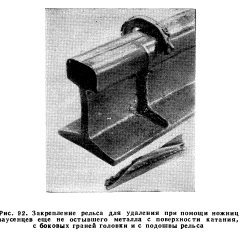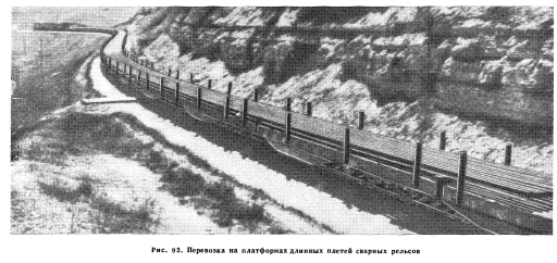 ПРОЦЕСС СВАРКИ В СВАРОЧНЫХ МАСТЕРСКИХЕсли рельсы предназначаются для сварки встык, то обычно длина таких рельсов, выпускаемых с рельсопрокатных заводов, составляет 11,89 м\ рельсы изготовляются с регулируемым охлаждением и с концами без болтовых отверстий; исключением являются только те рельсы, концы которых подвергаются закалке и в которых отверстия просверливаются в связи с тем, что эти рельсы будут служить концами длинных сварных плетей, для соединения которых с соседними рельсами будут применяться обычные стыковые накладки. Концы рельсов без болтовых отверстий закалке не подлежат. Как правило, рельсы длиной 11,89 м отправляются во временные сварочные мастерские, обычно монтирующиеся вблизи от места укладки сварных рельсов. Рельсы разгружаются и складываются в штабеля рядом с подъемником (аппарелью). Сварочная мастерская включает в себя ряд установок, обслуживаемых группой катков. Газопрессовая сварка. При газопрессовой сварке в мастерской имеются приспособления для распиловки рельсов, сварки их в стык, срозки с поверхности рельсов лишнего металла, для нормализации напряжений, охлаждения и шлифовки; после прохождения всех этапов обработки длинные плети спускаются по аппарелям. Для удаления следов распиловки в горячем состоянии и выравнивания торцов рельсов так, чтобы в сварочной машине можно было осуществить их точную пригонку, концы рельсов обрезаются. Обычно два конца рельса ставятся впритык и в этом месте пропиливаются пилой за один проход. Другие концы рельсов стыка приподнимаются для того, чтобы после выхода из сварочной машины в месте сварки не образовалось горба. Сразу же после распиловки торцы рельсов покрываются смазкой для предохранения их от окисления, которое может произойти, пока рельсы лежат около сварочной машины. Перед установкой на сварочной машине с торцов рельсов снимают смазку и другие посторонние вещества, а поверхность торцов выравнивают напильником. После сварки плети перемещаются к месту, где производится срезание выдавленного металла. Здесь большая часть выдавленного в процессе сварки металла удаляется газовыми резаками для того, чтобы в дальнейшем сократить объем работ по шлифовке, необходимой для восстановления первоначального профиля рельса. Металл снимается как с поверхности катания и боковых граней головки, так и с кромок подошвы. После этого сварной стык перемещается на пункт нормализации; здесь стык вторично нагревается до критической температуры, при которой происходит снятие внутренних напряжений. Сварные стыки охлаждаются в течение такого периода времени, который требуется для сварки еще трех стыков, после чего с поверхности катания и с боковых граней головки, а также и с других элементов профиля сошлифо- вывается весь лишний металл; исключением является нижняя грань подошвы рельса. После шлифовки стык обследуется поляризационным методом для выявления в нем дефектов. Почти везде, за исключением лишь нескольких дорог, принято при газовой сварке под давлением оставлять выдавленный металл на нижней грани подошвы рельса; делается это не только для снижения стоимости шлифовки, но и потому, что в этом случае прочность стыка, как считают, будет выше. Однако надо отметить, что оставленный на подошве осаженный металл затрудняет разгрузку и укладку рельсов. Выступающий н