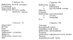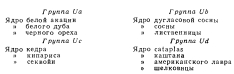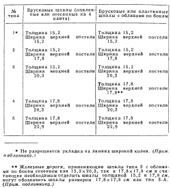 ТЕХНИЧЕСКИЕ УСЛОВИЯ AREA НА ШПАЛЫА. Материал 1. Породы леса. Прежде чем приступить к заготовке шпал, заготовитель должен совместно с заказчиком выбрать для этого породы леса из числа перечисленных ниже пригодных для шпал пород деревьев. ![]() Прочие породы не допускаются, если только это специально не оговорено в заказе. Б. Физические свойства 2. Общие требования. Помимо перечисленных ниже, шпалы не должны иметь дефектов, которые могут снизить их прочность или срок службы, например таких, как гниль, большие продольные трещины, морозобойные трещины, косослойность и большие или многочисленные суши. 3. Сопротивление износу. ВГ>хняя четверть сечения шпал из хвойных пород леса должна состоять целиком из плотной древесины, так, чтобы на 1 дюйм длины оадиуса, проведенного от сердцевины в любом направлении, приходилось шесть годичных колец или более. 4. Стойкость древесины против гниения. В непропитанных шпалах в пределах сечений, отстоящих на 50—100 см от середины шпалы, заболонь должна составлять не более г/4 ширины верхней постели шпалы. Такие шпалы называются ядровыми, а имеющие больший процент заболони принято называть заболон- ными. В. Типы шпал 1. Размеры шпал . а) До начала заготовки шпал заготовитель должен установить требования заказчика в отношении длины и сечения шпалы, а также требуются ли отесанные или опиленные шпалы и чистообрезные или допускаются шпалы с обливами по бокам. б) За исключением особо оговоренных случаев шпалы должны иметь длину 2,44; 2,59 и 2,74 м. в) За исключением особо оговоренных случаев шпалы в сечениях, отстоящих на 50 и 100 см от середины, должны иметь следующие размеры в см: ![]() Г. Заготовка шпал Исключая особо оговоренные случаи, шпалы должны быть прямые, иметь гладко затесанные или опиленные верхнюю и нижнюю постели, параллельные друг другу, кора должна быть полностью очищена. 1. Место приемки. Дорога может принимать шпалы в любом удобном для нее месте как в пунктах погрузки, так и в пунктах назначения. Шпалы можно принимать также и не на территории дороги, если количество шпал настолько велико, что, по мнению дороги, это целесообразно; однако в этом случае поставщик обязан оплатить расходы приемщика дороги и покрыть издержки дороги по доставке приемщика в сторону от железнодорожных или пароходных линий и обеспечить доставку его в оба конца от железнодорожной станции или пароходной пристани. 2. Приемка. Инспектор обязан тщательно осмотреть верхнюю и нижнюю постели, бока и торцы каждой шпалы. Оценка каждой шпалы дается индивидуально, независимо от оценки остальных шпал в том же штабеле. Шпалы, сплавленные россыпью или в плотах и слишком грязные для возможности полного осмотра, бракуются. Шпалы, поднятые лесотаской, перевертываются для осмотра за счет поставщика. 3. Гниль. Допускается наличие следующих признаков гниения: в кедровых и кипарисовых шпалах—трубчатая и пористая гниль и серянки глубиной соответственно указанной для углублений; в каштановых шпалах глубина ходов жуков-лубоедов не должна превышать 6 мм. Синева не считается гнилью и допускается во всякой древесине. 4. Углубления (засмолки, прорости и ройки). Не допускаются большие углубления в пределах сечений от 50 до 100 см от середины шпалы. Большим углублением другого происхождения, чем вызванное трубчатой или пористой гнилью в кедровых шпалах, считается уг