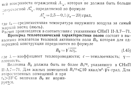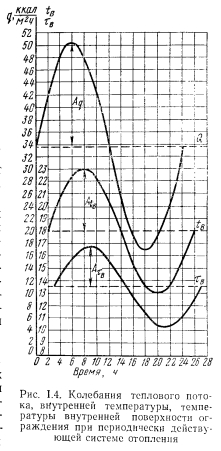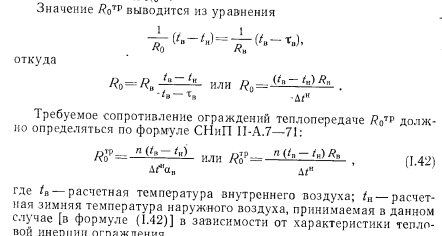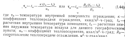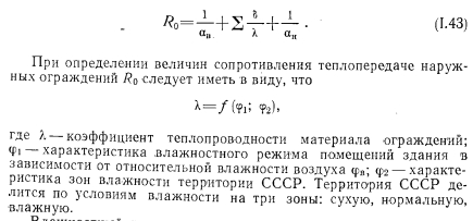 ВЫБОР ОГРАЖДАЮЩИХ КОНСТРУКЦИЙОграждающие конструкции, кроме прочностных и конструктивных требовании, должны удовлетворять экономическим теплотехническим и санитарно-гигиеническим требованиям. Теплотехнические свойства ограждений характеризуются сопротивлением теплопередаче, теплоустойчивостью воздухо- и паропроницаемостью. Оптимальную толщину ограждающих конструкций можн найти путем сопоставления стоимости и эксплуатации здания с стоимостью эксплуатации отопительных устройств в ем. Очевидно, ограждения оптимальной толщины будут характеризоваться наименьшей величиной приведенных затрат и возведение здания и эксплуатационных расходов по зданию, включают систему отопления. ![]() Определить наивыгоднейшую толщину ограждения можно аналитически и графически. Оптимальна толщина ограждения (на графике — Рис. 1.3. Графическое определение оптимальное сопротивление тепло- оптимальной толщины ограждения передаче), отмечаемая на оси абсцисс (рис. 1.3), будет соответствовать минимальным суммарным расходам на эксплуатацию здания (кривая а) и эксплуатацию систем отопления (кривая б). Определение оптимального сопротивления теплопередаче ограждения является задачей чрезвычайно важной и сложной, особенно если иметь в виду, что сопротивление теплопередаче является показателем расхода топлива, потребление которого на отопление в масштабах страны составляют 30—40% от его общего количества. Проф. В. Н. Богословский рекомендует следующую формулу для определения оптимального значения сопротивления теплопередаче RoonT [3] в м2-ч-град/ккал: ![]() Из выражения (1.23) видно, что при дешевой изоляции и высокой стоимости топлива величина 7% опт будет расти, т. е. ограждения будут более массивными. Сопротивление теплопередаче ограждающих конструкций из экономических условий возможно определить также по методике СНиП II-A.7—71. ![]() Чем меньше будут колебания температуры внутренней поверхности при различных колебаниях температуры наружного воздуха, тем ограждение будет более теплоустойчивым. Отсюда следует, что необходимо дополнительно выявить, удовлетворяют ли проектируемые конструкции ограждений условиям тепловой устойчивости. Разность температур воздуха помещений и внутренней поверхности наружных ограждений имеет большое санитарно-гигиеническое значение. Для обеспечения нормальной терморегуляции человек должен отдать тепло в окружающую среду. Тепло, отдаваемое телом человека, передается в окружающую среду следующими способами: теплопроводностью, конвекцией, излучением и, наконец, испарением влаги с поверхности тела и с влагой, содержащейся в выдыхаемом воздухе. Потеря тепла излучением зависит от температуры внутренних поверхностей ограждений: чем ниже температура внутренней поверхности ограждений, тем интенсивнее передается тепло лучеиспусканием. Слишком большая разность температур воздуха может вызвать чрезмерно высокую отдачу тепла телом человека излучением, что нежелательно. По этой причине разность температур между воздухом помещения tB и внутренней поверхностью ограждения тв нормируется, т. е. указывается максимально допустимая разность этих температур. Кроме того, разность температур ( в Тв) должна гарантировать от выпадения конденсата на внутренней поверхности ограждения. Температура внутренней поверхности н