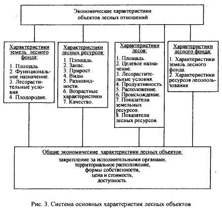 Обзор показателей, применяемых для характеристики каждого объекта лесных отношений, позволяет сформировать обобщенную систему основных характеристик всех видов лесных объектов, приведенную на рис. 3. На основе количественных и качественных характеристик объектов лесного фонда осуществляется поиск резервов в улучшении лесного фонда как стратегического ресурса национальной экономики.