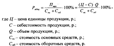 Показатели рентабельностиДля оценки эффективности работы предприятия недостаточно использовать только показатель прибыли. Например, два предприятия получают одинаковую прибыль, но имеют различную стоимость производственных фондов, т.е. сумму основного капитала и оборотных средств. Более эффективно работает то предприятие, у которого стоимость производственных фондов меньше. Таким образом, для оценки эффективности работы предприятия необходимо сопоставить с затратами или с используемыми ресурсами. Рентабельность это относительный показатель эффективности производства, характеризующий уровень отдачи затрат и степень использования ресурсов. В наиболее широком понятии рентабельность означает прибыльность, или доходность. В практике работы предприятий применяется ряд показателей рентабельности. Общая рентабельность (производства) отражает результативность использования имущества предприятия й эффективность производства, показывая величину прибыли, приходящейся на рубль вложенных основных и оборотных средств. Она определяется как отношение Суммы валовой прибыли к средней за данный период стоимости основных и оборотных средств: