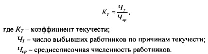 4. Коэффициент текучести отношение числа выбывших за отчетный период работников по причинам текучести (увольнение по собственному желанию и за нарушение трудовой дисциплины) к среднесписочному числу работников.