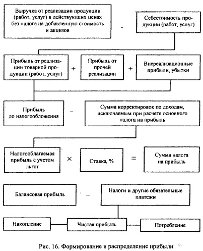 Виды прибылиРазличают следующие виды прибыли: валовая прибыль это сумма прибылей (убытков) предприятия как от реализации продукции, так и доходов (убытков), не связанных с ее производством и реализацией. Под реализацией продукции понимается не только продажа произведенных товаров, имеющих натуральновещественную форму, но и выполнение работ, оказание услуг. Прибыль от реализации продукции (работ, услуг) — это финансовый результат, полученный от основной деятельности предприятия, определяется путем вычета из общей суммы выручки от реализации продукции в действующих ценах (без НДС и акцизов) затрат на производстве и реализацию продукции, включаемых в себестоимость продукции Прибыль от выполнения работ и оказания услуг рассчитывается аналогично прибыли от реализации продукции, раздельно по всем видам деятельности, т.е. прибыль (убыток) подсобного сельского хозяйства, автохозяйств, лесозаготовительных и других хозяйств, находящихся на балансе предприятия. Прибыль (или убытки) от реализации основных средств и другого имущества это финансовый результат, не связанный с основными видами деятельности предприятия. Он отражает прибыли (убытки) по прочей реализации, к которой относится продажа на сторону различных видов имущества, числящегося на балансе предприятия (здания, сооружения, оборудование, транспортные средства и другие основные фонды, материальные ценности, полученные в процессе сноса и разборки зданий, сооружений, товарноматериальные ценности и другие виды имущества). Финансовый результат при реализации основных средств рассчитывается как разность между.выручкой от реализации этого имущества (за вычетом НДС, акцизов) и остаточной стоимостью по балансу, скорректированной на коэффициент, соответствующий индексу инфляции. Под иным имуществом предприятия понимаются сырье, материалы, топливо, запчасти, нематериальные активы (патенты, лицензии, программные продукты для ЭВМ), валютные ценности (иностранная валюта, драгоценные металлы и т.д.), ценные бумаги. Разница между продажной ценой этих видов имущества и их балансовой стоимостью (с учетом понесенных в связи с этим расходов) составляет финансовый результат, влияющий на сумму валовой прибыли. Прибыль (или убытки) от внереализационных операций, т.е. операций, не относящихся к основной деятельности предприятия и не связанных с реализацией продукции, основных средств, иного имущества предприятия, выполнением работ и Оказанием услуг. Финансовый результат определяется как Доходы (или убытки) за минусом расходов по внереализационным операциям. Перечень внереализационных прибылей (или убытков) предприятия разнороден и довольно обширен. Значительный удельный вес могут составлять доходы от долгосрочных и краткосрочных финансовых вложений и доходы от сдачи имущества в аренду. Под долгосрочными финансовыми вложениями понимаются затраты предприятия по вкладу средств в уставной капитал других предприятий, приобретению акций и других ценных бумаг, предоставлению средств взаймы на срок более года. К формам краткосрочных финансовых вложений относятся приобретение краткосрочных казначейских обязательств облигаций и других ценных бумаг, предоставление средств взаймы на срок менее года. Доходы от сдачи имущества в аренду формируются из получаемой арендной платы, к