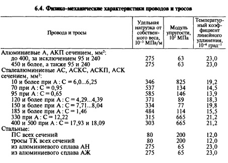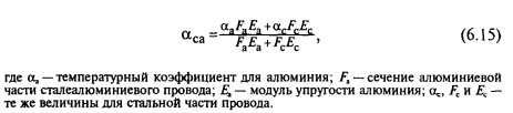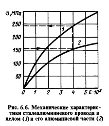 Таким образом, сталеалюминиевый провод рассчитывают как провод того же сечения из одного металла, для которого известны временное сопротивление, коэффициент упругого удлинения и температурный коэффициент (см. табл. 6.3 и 6.4).