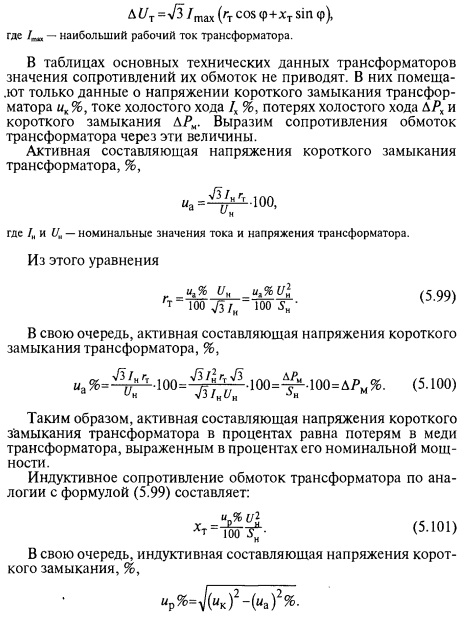 Трансформаторы. Простейшая приближенная схема замещения двухобмоточных трансформаторов для одной фазы состоит из последовательно включенных сопротивлений — активного и индуктивного. При прохождении тока через обмотки трансформатора потеря напряжения в них