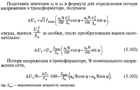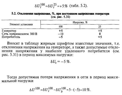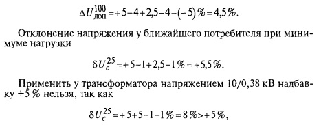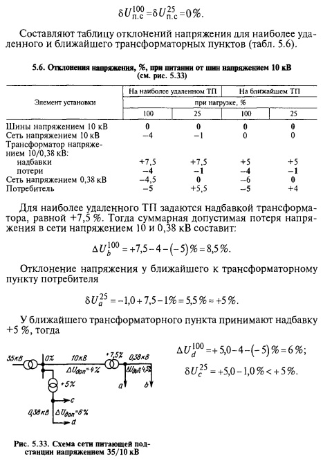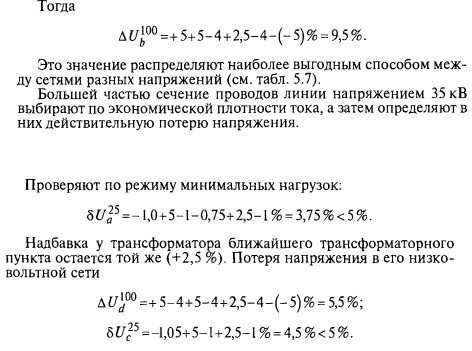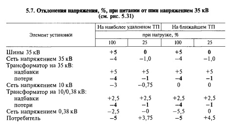 Определяют допустимую потерю напряжения в сети напряжением 35,10 и 0,38 кВ, исходя из допустимых отклонений напряжения у потребителя (табл. 5.7).