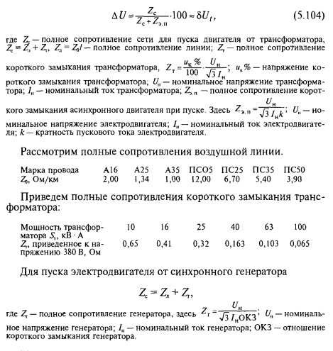 При компаундировании (см. п. 10.15) полное сопротивление генератора может быть принято равным нулю. Таким образом, компаундирование — хорошее средство для уменьшения глубины провала напряжения при пусках электродвигателей соизмеримой мощности от небольших генераторов. Приведенный ранее метод расчета дает весьма приближенные результаты и пригоден только для ориентировочных оценок возможности пуска электродвигателя в данных условиях. Для точных расчетов необходимы характеристики электродвигателей и приводимых ими рабочих машин. И. А. Будзко, Т. Б. Лещинская, В. И. Сукманов, Электроснабжение сельского хозяйства, М., Колос, 2000 |
