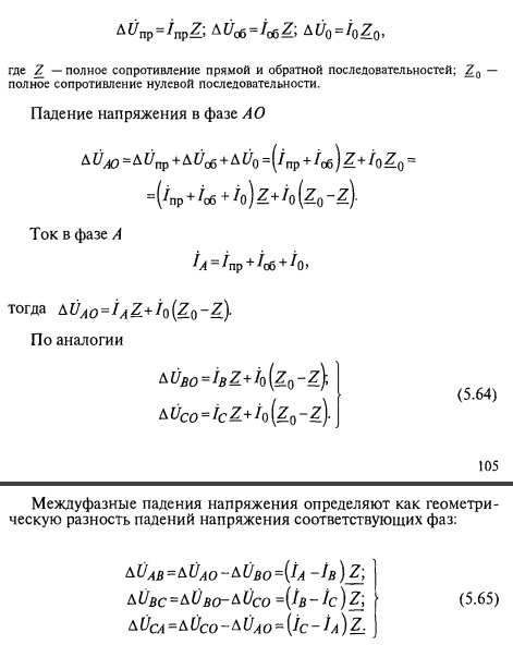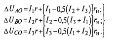 Потерю напряжения между другими фазами определяют по аналогичным уравнениям.