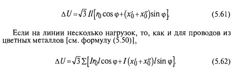 Из диаграммы видно, что изменение cos сравнительно мало влияет на потерю напряжения. Поэтому при расчете отмечают на заштрихованной полосе точку, расположенную между крайними кривыми для cos ф = 0,9 (верхняя кривая) и для cos ф = 0,7 (нижняя кривая), пропорционально значению заданного соs ф. По этим кривым можно быстро найти сечения проводов по заданным потерям напряжения. Рассмотрим порядок расчета стальных проводов. 1. Распределяют допустимую потерю напряжения по участкам сети по формулам (5.60), затем определяют ее значение на 1 км длины каждого участка. По сравнению с другими методами расчета этот метод прост, удобен для пользования, и для расчета нужны только две несложные серии кривых. Его можно рекомендовать как основной расчетный метод в рассматриваемом курсе. И. А. Будзко, Т. Б. Лещинская, В. И. Сукманов, Электроснабжение сельского хозяйства, М., Колос, 2000 |