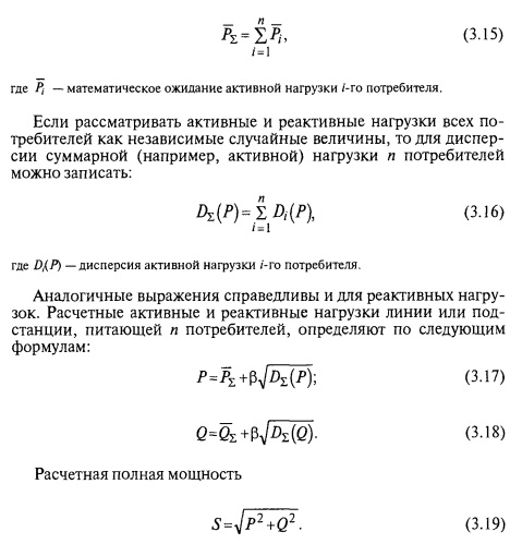 Математическое ожидание Р и Q и дисперсии соответствующие средние квадратические отклонения) представляют основные вероятностные характеристики электрических нагрузок сельскохозяйственных потребителей. С помощью этих характеристик определяют расчетные электрические нагрузки линий и подстанций, к которым присоединено любое число разных объектов. С этой целью используют известные из курса теории вероятностей теоремы сложения математических ожиданий и сложения дисперсий. Рассматривая электрические нагрузки как случайные величины, можно, как известно, для математического ожидания суммарной