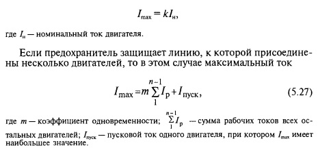 Для предохранителей обычного типа, защищающих ответвления к короткозамкнутым асинхронным двигателям с нормальными условиями работы (редкие пуски, продолжительность разбега 5...10с), а = 2,5. Максимальный ток в цепи с одним двигателем равен его пусковому току. В каталогах обычно приводят кратность пускового тока двигателя к. Тогда максимальный ток в цепи