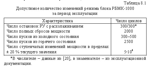 Допустимое число изменений режима (циклы)В табл. 8.1, иллюстрирующей рассматриваемую характеристику, приведены данные, взятые из [20]. Данные по допустимому числу изменений режима для блока в целом в эксплуатационной документации практически отсутствуют.