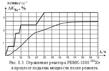 В целом продолжительность пуска блока РБМК-1000 составляет более полутора суток [15, 38]. |