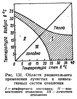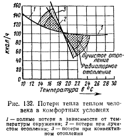 ОСОБЕННОСТИ ОТОПЛЕНИЯ ГОРЕЛКАМИ ИНФРАКРАСНОГО ИЗЛУЧЕНИЯ И ВЫТЕКАЮЩИЕ ИЗ НИХ ТРЕБОВАНИЯЗа последнее десятилетие значительное распространение получили системы лучистого отопления с использованием газовых горелок инфракрасного излучения. В Советском Союзе все шире находят применение газовые горелки инфракрасного излучения (ГИИ) для отопления зданий легкого типа и больших объемов, а также открытых площадок (кафе, закусочные и производственные цехи). Суть лучистого отопления состоит в том, что излучение в области инфракрасного спектра, попадая на тело человека, поглощается им и, преобразуясь в тепловую энергию, нагревает его. При этом окружающий воздух почти не нагревается. Для лучшего понимания действия лучистого отопления на организм человека необходимо ознакомиться с особенностями тепловых ощущений человека и био-физиологических восприятий им инфракрасного излучения. Известно, что в результате жизнедеятельности человек непрерывно вырабатывает тепловую энергию, часть которой (около 20%) используется на полезную работу организма, а другая часть, около 80%, удаляется в окружающую среду. Считается, что взрослый человек в спокойном состоянии вырабатывает в 1 ч 108—125 ккал тепла. При усиленной физической работе тепловыделения человека возрастают свыше 450 ккал/ч. Отдача человеком тепла в окружающую среду при нормальных условиях и конвективном отоплении составляет: 25% (конвекцией); 50% (излучением); 22% (испарением) и 3% (дыханием и движением). Таким образом, теплопотери лучеиспусканием в этом случае составляют половину всех теплопотерь человека и в 2 раза превышают теплопотери конвекцией. До недавнего времени считалось, что тепловые ощущения человека зависят только от так называемого теплового баланса его тепла, т. е. от того, сколько тепла человеческое тело отдает в окружающую среду. При этом не принималось во внимание, каким образом отдается это тепло и каково соотношение температур воздуха и ограждающих конструкций или предметов, непосредственно окружающих человека. Поскольку основным видом отопления до недавнего времени было конвективное, то и проводившиеся исследования по определению комфортных условий для человека подтверждали, что нормальное тепловое ощущение человек испытывает при некотором интервале температур окружающего воздуха. Например, для человека, не выполняющего физическую работу, таким интервалом температур окружающего воздуха принято считать 18—52°. При снижении или повышении этих температурных пределов человек испытывает неприятные тепловые ощущения (в первом случае он зябнет, во втором — ему жарко). В соответствии с этими условиями и были установлены нормы оптимальной температуры воздуха внутри жилых и общественных помещений. С применением лучистого отопления возникло немало трудностей в обеспечении комфортных условий для людей, находящихся в помещениях, обогреваемых этим отоплением. Наблюдались случаи, когда, казалось бы, при одинаковых условиях обогрева помещений лучистым отоплением одни люди жаловались на холод, другие — на жару. Многочисленные исследования показали, что для человека не безразлично, каким способом ему передается или отводится от него тепло. Тай, например, оказалось, что при лучистом обогреве общие теплопотери человека несколько снижаются в сравнении с теплопотерями п