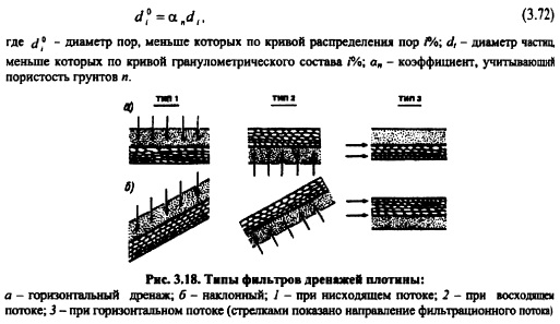ФИЛЬТРАЦИОННЫЕ ДЕФОРМАЦИИ В ГРУНТАХ ОСНОВАНИЯ И ТЕЛА ГРУНТОВЫХ ПЛОТИНВ п. 3.1 было показано, что фильтрующая вода оказывает на частицы грунта силовое воздействие. Удельная сила воздействия (на единицу объема грунта) определяется согласно уравнению (3.12) и направлена по касательной к линии тока. Эти силы вызывают деформации, которые носят название фильтрационных. Деформации подразделяются по видам. Фильтрационный выпор разрушение непригруженной части грунта, когда часть грунта отделяется от всего массива. Такой вид фильтрационных деформаций обычно имеет место в песчаных грунтах основания, на низовом откосе песчаных плотин. Сопровождаются эти деформации повышенной сосредоточенной фильтрацией (образованием грифонов). Вопросам борьбы с такого рода фильтрационными деформациями посвящены работы К. Терцаги, B.C. Баумгарта и Р.Н. Дави денкова, А.А. Ничипоровича и B.C. Истоминой, др. Препятствуют выпору вес самого грунта, взвешенного в воде, сцепление грунта и вес пригрузки (часто в виде дренажа), также взвешенной в воде (см гл. 7). Такой вид фильтрационных деформаций может иметь место в песчаных основаниях под бетонной плотиной (см. §7.2). Суффозия вынос мельчайших частиц песчаного или вообще несвязного грунта в месте контакта с более крупным грунтом (контактная суффозия) или перемещение мелких частиц из одной толщи разнозернистого грунта в другую внутренняя суффозия (см. гл. 7 и 12). При наличии в грунтах легкорастворимых солей возможно их растворение (химическая суффозия). Суффозия очень распространенный вид фильтрационных деформаций и может иметь место и в основании бетонных плотин, и в фунтовых плотинах, и в каменных креплениях откосов. Контактный выпор разрушение глинистого грунта в месте контакта с более крупнозернистым материалом (см. также гл. 7 и 12) фильтрационным потоком, направленным нормально к контакту. Контактный выпор чаще всего имеет место под бетонными плотинами на глинистом основании при выходе фильтрационного потока в дренаж, в грунтовой плотине в месте контакта глинистого ядра (грунтового экрана) с переходной зоной или вообще глинистого элемента плотины с дренажом. Контактный размыв разрушение грунта в месте контакта с более крупнозернистым фунтом фильтрационным потоком, направленным вдоль контакта. Контактный размыв может происходить в месте контакта ядра грунтовой плотины с призмами или под креплением откосов со стороны ВБ при фильтрации воды вдоль мест контакта фунтов. Кольматацил отложение в порах более крупнозернистого грунта мелких частиц, выносимых фильфационным потоком. В этом случае могут существенно снизиться проницаемость дренажа (если он колъматируется) и повыситься напоры, что может вызвать другие фильтрационные деформации или понизить устойчивость бетонных плотин (см. гл. 7 и 12). Отслаивание офыв глинистых частиц от массива за счет расклинивающего действия частиц воды (см. гл. 12). Этот вид деформаций чаще всего происходит в месте контакта ядра (экрана) плотины с переходной зоной. Для защиты оснований и фунтов фунтовых сооружений используют фильтры, которые в каменноземляных плотинах (гл. 12 и 13) в месте контакта ядра (экрана) с упорными призмами носят название переходных зон. По данным Международной комиссии по большим плотинам, в 25% случаев разрушения гидротехнических сооружений происходят из-