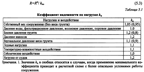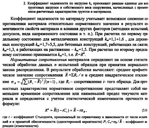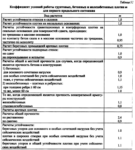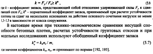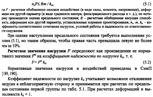 ОСНОВНЫЕ ПРИНЦИПЫ ИНЖЕНЕРНЫХ РАСЧЕТОВ ТТЛПосле того как найдено общее водохозяйственное и конструктивное решение, отвечающее условиям экономики и социального развития района строительства, переходят к решению тех инженерных задач, которые обеспечивают функциональную и конструктивную надежность сооружения. Важнейшими видами инженерных расчетов по решению задач проектирования гидросооружений являются: расчеты пропускной способности водопропускных сооружений, расчеты прочности и устойчивости сооружений и их конструктивных элементов на действие статических и динамических нагрузок, гидравлические и фильтрационные расчеты по обоснованию надежности сооружения и его основания на опасные воздействия поверхностных, глубинных и фильтрационных потоков. Основные положения расчета гидросооружений по методу предельных состояний. В настоящее время гидротехнические сооружения, их конструкции и основания рассчитывают по методу предельных состояний. Предельными называют состояния, при которых конструкция, сооружения или его основание теряют способность сопротивляться внешним нагрузкам и воздействиям или получают недопустимые повреждения или деформации, т.е. перестают удовлетворять нормативным требованиям. Различают две группы предельных состояний [188]. Первое предельное состояние состояние, при достижении которого происходит потеря несущей способности и (или) полная непригодность сооружений к эксплуатации, т.е. при достижении этого состояния сооружения становятся непригодными к эксплуатации в результате хрупкого, усталостного или пластического разрушения материала сооружения или основания, потери устойчивости и т. д. Для оценки этого состояния выполняют расчеты общей прочности и устойчивости, общей фильтрационной прочности оснований и грунтовых сооружений, прочности и перемещений таких элементов сооружения, разрушение и перемещение которых делает невозможной эксплуатацию сооружения в целом. Второе предельное состояние состояние, при котором становится невозможной нормальная эксплуатация сооружения, его конструкций или основания в результате развития деформаций, нарушения местной фильтрационной прочности или прочности отдельных элементов сооружения, не рассмотренных при расчетах по предельным состояниям первой группы. По второй группе ведут расчеты оснований на местную прочность, на местную фильтрационную прочность оснований и грунтовых сооружений, расчеты перемещений и деформаций, образования и раскрытия трещин и строительных швов, расчеты прочности отдельных элементов сооружения. Разделение предельных состояний на две группы условно. Так, несоответствие отнесенному ко второму состоянию деформации осадки гребня фунтовой плотины может привести к переливу воды через гребень плотины и ее размыву, а нарушение местной фильтрационной прочности на грунтовой плотине Те тон (США) привело к прорыву плотины с трагическими последствиями [102]. Проверка недопущения наступления предельных состояний гидротехнических сооружений, их конструкций и оснований ведется по следующей формуле При оценке наступления предельного состояния требуется выполнение условия (5.1), но таким образом, чтобы правая часть превышала левую не более чем на 10%. Расчетное значение нагрузки F определяют как произведение ее норм
