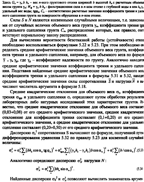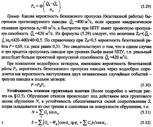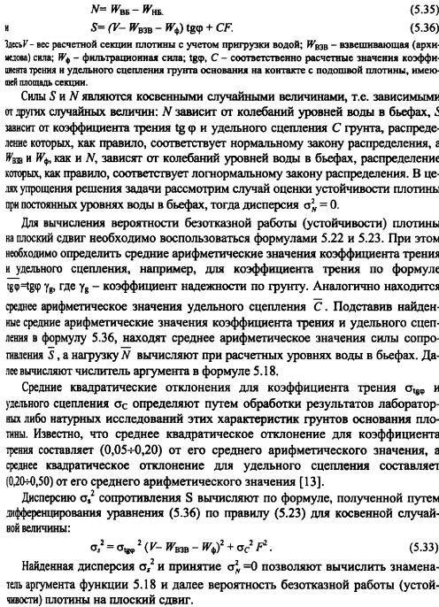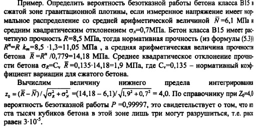 РЕШЕНИЕ ГИДРОТЕХНИЧЕСКИХ ЗАДАЧ В ВЕРОЯТНОСТНОЙ ПОСТАНОВКЕПрочность бетона. Вследствие влияния различных технологических и эксплуатационных факторов прочность бетона имеет случайный характер, как правило, с нормальным законом распределения, который характеризуется средним арифметическим значением прочности Rd и средним квадратическим отклонением о. Эксплуатационные нагрузки в виде напряжений также носят случайный характер в зависимости от условий эксплуатации и доминирующих нагрузок могут отвечать различным законам распределения: нормальному, логарифмически нормальному, экспоненциальному и др. При нормальном законе распределения напряжения характеризуются средним арифметическим значением N и средним квадратическим отклонением а. Для определения вероятности безотказной работы по прочности сначала находится величина ![]() ![]() Пропускная способность водосбросов [118]. Так как пропускная способность водосброса Q паводковый расход Q формируются совокупностью влияния большого числа факторов, то в большинстве практических случаев можно принять, что они являются случайными величинами, имеющими нормальное распределение с соответствующими параметрами Qt, о, и Qn, оп. Тогда вероятность безотказной работы водосброса может быть определена по ![]() При оценке пропускной способности водосбросов необходимо иметь в виду следующее. Среднее квадратическое отклонение оп определения паводкового расхода Qa. является по сути погрешностью его прогноза и составляет не менее 1015% от его значения. Среднее квадратическое отклонение ав характеризует возможное отклонение реальной пропускной способности водосброса от проектной в основном за счет допусков в геометрии (очертаниях) пропускного отверстия и водослива. Ввиду их, как правило, незначительного влияния, можно допустить (v=0, тогда формула (5.27) примет вид: ![]() ![]() ![]() |
