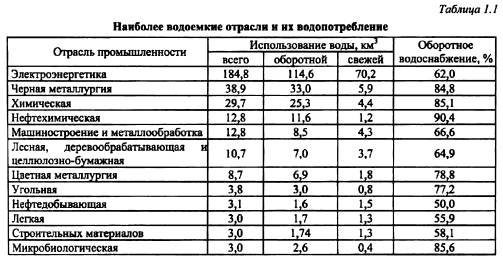 ВОДНЫЕ РЕСУРСЫ И ВОДНОЕ ХОЗЯЙСТВОПринято представлять Землю как систему сфер. Гидросферу Земли составляют океаны, моря, ледники, озера, реки, подземные воды, пары воды в атмосфере. Общий объем гидросферы оценивается в 1,5 млрд км3, а объем Земли в 1083 млрд км3. В этом объеме наименее достоверно определены подземные воды. Из всего объема гидросферы 1,35 млрд км составляет вода океанов и морей. Внутритерриториальные воды составляют 0,15 млрд км3 и играют исключительно важную роль для жизни человечества. Из этого объема следует выделить годовой (осредненный) сток рек, который составляет около 40 тыс. км3. Этот сток имеет особенное значение, так как именно эта вода наиболее доступна для жизнедеятельности человека. На Европу из этого объема приходится около 3 тыс. км3, на Азию 13 тыс. км3. Речной сток на территории Российской Федерации ( площадь 17,07 млн км2) 4043 км3, или около 10% мирового стока. Сток подземных вод оценивается в 800 км3. Из всего стока на территории РФ на европейскую часть приходится 850 км3 (20%), на азиатскую 80%. Сток рек неравномерно распределяется во времени: 75% падает на период паводков, на длительный меженный период приходится только 25% стока. В моря Ледовитого океана впадают реки, несущие 86% стока, а в южном направлении 14%. Потребность в воде распределена наоборот. Это обстоятельство и требует искусственного перераспределения стока по территории страны в интересах народного хозяйства и во времени. Жизнедеятельность человека невозможна без воды. На его бытовые и коммунальные нужды требуется воды до 600 л/(сут*чел). Такая норма очень редко достигается, а во многих крупных городах мира она составляет менее 200 л/(сут*чел.). Водные ресурсы используются для водного транспорта, получения электроэнергии, снабжения водой промышленных комплексов, орошения засушливых земель, развития рыбного хозяйства и т. п. Роль энергетики и промышленности в водопотреблении постоянно растет, так как современная технология производства материалов и изделий требует большого количества воды. В табл. 1.1. приведено водопотребление в 1986 г. по отраслям. Из табл. 1.1 следует, что промышленность ежегодно требует дополнительно 106 км3 воды, так как остальная потребность восполняется за счет оборотного водоснабжения. Наиболее водоемкими являются атомные и тепловые электростанции. Гидроэнергетика использует потенциальную энергию водотоков, но не воду. Главное ее достоинство возобновляемый источник энергии. Дальнейшее развитие промышленности должно строиться на доведении оборотного водоснабжения до максимально возможного (с учетом типа производства).