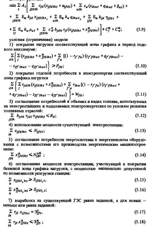Модели электроэнергетических системТЭЦ, являясь комплексным объектом, должна рассматриваться не просто как элемент системы централизованного теплоснабжения, но и как объект электроэнергетической системы. ТЭЦ как элемент двух систем естественно требует совместной оптимизации развития этих двух систем. При этом возможны два принципиальных подхода к решению данной задачи: 1) создание единой модели, охватывающей развития тепло- и электроснабжающих систем; 2) раздельная оптимизация систем с итеративной увязкой результатов решения. В настоящее время использование первого подхода возможно только на уровне развития отдельного энергоузла, поскольку на этом уровне реально имеются системы электро- и теплоснабжения. На более высоких иерархических уровнях (район, страна) системы теплоснабжения отсутствуют (см. рис. 2.2). Попытка реализации первого подхода, например, на уровне района приводит к необходимости одновременного решения совокупности локальных задач (оптимизация систем тепло- и электроснабжения отдельных узлов) и более общей задачи (оптимизация систем электроснабжения района). Размерность задачи, особенно при ее динамической постановке, становится очень большой, что затрудняет ее решение. Поэтому в настоящее время практически используется итеративное решение двух изолированных задач развития тепло- и электроснабжения. Развитие электроэнергетики в отличие от других отраслей промышленности и народного хозяйства имеет ряд особенностей, предопределяющих решение круга задач, необходимых для нахождения рациональных путей ее развития. К числу этих особенностей, в первую очередь необходимо отнести: тесную взаимосвязь отдельных электропредприятий друг с другом при удовлетворении потребителей народного хозяйства в электрической энергии. Эта взаимосвязь предопределяет необходимость одновременного создания энергопредприятий различного типа: базисных и пиковых, а также пол уликовых электростанций; неразрывность процессов производства и потребления электроэнергии, предопределяющая необходимость создания резервных мощностей; большой срок от начала проектирования и строительства энергообъектов до момента вывода их из эксплуатации, что приводит к необходимости предусматривать изменение в динамике роли и режимов работы создаваемых энергообьектов; чрезвычайно большая капиталоемкость электроэнергетики и большая доля эксплуатационных расходов на станциях с органическим и ядерным топливом, приводящая к необходимости рассмотрения их взаимоотношения в динамике. Определение рациональных путей развития электроэнергетики в силу ее тесной взаимосвязи с другими отраслями промышленности и народного хозяйства, а также иэ-за целого комплекса внутренних изменяющихся во времени параметров, которые подчас характеризуются нелинейными взаимосвязями, является весьма сложной динамической задачей. Особую сложность в ее решении придает и то, что целый ряд параметров, такие, например, как режим электропотребпения и показатели работы ГЭС, являются вероятностными. Выбор оптимальной структуры генерирующих мощностей ЭЭС — одна из основных задач перспективного развития электроэнергетики. В общем виде под структурой генерирующих мощностей ЭЭС понимаются пропорции в развитии типов электростанций (КЭС и ТЭЦ на различны