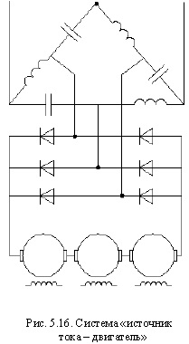 Примерно в это же время у системы ТП-Д появился конкурент. В 1970-е гг. в Институте электродинамики АН УССР и в МЭИ были проведены исследования оригинальной системы «параметрический источник тока - двигатель постоянного тока» (рис. 5.16), позднее широко используемой в агрегатах кабельной промышленности, в ряде технологических линий, лебедках, нагрузочных устройствах и т. п. |
