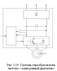 Современный электроприводКонцептуальные изменения в развитие электропривода внесла новая элементная база силового канала - полностью управляемые ключи, появившиеся на рынке в последние 6-7 лет, и средства управления ими. Фирмы «Тошиба», «Сименс» и др. выпустили силовые транзисторы IGBT на токи до 600 А, напряжение до 1200 В с частотами 30 кГц и выше. Эти приборы, объединенные в модули со встроенными быстрыми обратными диодами и управляемые указанными выше современными средствами, послужили основой для построения преобразователей частоты со структурой «неуправляемый выпрямитель - LC-фильтр - автономный инвертор с широтноимпульсной модуляцией (ШИМ)» (рис. 5.19), ставших основным техническим решением в регулируемом электроприводе переменного тока мощностью до 600 кВт. Преобразователи более мощных приводов строятся на полностью управляемых тиристорах GTO, в бытовых и других электроприводах низкого напряжения используются приборы MOSFET. В 2002 г. европейский рынок регулируемых электроприводов на 68 % состоял из приводов переменного тока, на 15 % - из приводов постоянного тока, на 10 % - из гидроприводов и на 7 % - из механических приводов.