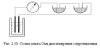 Установление законов электрической цепиВ. В. Петров еще в начале XIX в. указал на связь между поперечным сечением проводника и величиной тока в нем. В 1821 г. X. Дэви установил, что проводимость проводника зависит от материала и температуры; он также пришел к выводу о зависимости проводимости от площади поперечного сечения проводника. Более глубоко эти явления были исследованы немецким физиком Георгом Симоном Омом (1789-1854) (рис. 2.9) [5, 9, 12]. Первый этап исследований, начатых Г. С. Омом в 1821 г., когда он работал учителем математики и физики в одной из школ г. Кельна, относился к изучению проводимости различных проводников. Значение тока измерялось по магнитному действию: для этих целей он соорудил прибор, подобный крутильным весам Ш. Кулона, но вместо бузиновых шариков над проводником была подвешена магнитная стрелка. По углу кручения нити можно было судить о токе, действующем на стрелку. Располагая проводник в направлении магнитного меридиана, Г. С. Ом установил постоянство угла кручения нити, что подтверждало постоянство тока на различных участках цепи. Затем Ом провел серию экспериментов по исследованию проводимости различных металлов, из которых изготовлялись проводники, исследовал также зависимость угла отклонения магнитной стрелки от площади поперечного сечения проводника. Он установил, что проволоки из одного и того же материала, различающиеся площадью поперечного сечения, имеют «...одинаковую проводимость, если их длины пропорциональны поперечным сечениям» (рис. 2.10). Во время проведения опытов Г. С. Ом столкнулся с большими трудностями: электродвижущая сила гальванических элементов заметно снижалась в процессе их эксплуатации, механизм работы источников питания был неизвестен, общепринятых методов определения электропроводности проводников не существовало, в научную практику не были введены величины, характеризующие ток в цепи, не было приборов для измерения этих величин. Нужно было разработать не только методику проведения экспериментов, но и создать соответствующие приборы, обеспечить большую точность измерений. Все это потребовало от ученого незаурядного мастерства, упорства и находчивости. Ему пришлось отказаться от гальванических батарей и заменить их термоэлементом, изготовить несколько конструкций мультипликаторов. На основе многочисленных экспериментов Г. С. Ому удается вывести формулу, связывающую «силу магнитного действия проводника» (т. е. ток) с электровозбуждающей силой (ЭДС) источника и сопротивлением цепи, - это уже была основа закона электрической цепи.