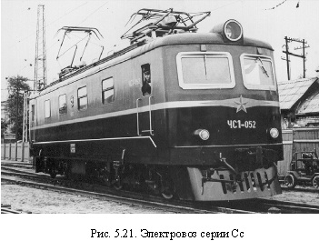 Для питания цепей управления, сигнализации и освещения, имевших номинальное напряжение 50 В, при неработающих генераторах тока управления использовалась свинцовая аккумуляторная батарея. В качестве регулятора напряжения генератора тока управления использовались аппараты со столбиками угольных дисков. Защита цепей ТЭД осуществлялась с помощью трех реле перегрузки, воздействующих на быстродействующий выключатель, а защита цепей электродвигателей вспомогательных машин - с помощью плавких предохранителей. Установленные на электровозах быстродействующие выключатели были сконструированы таким образом, что чем быстрее нарастал ток короткого замыкания, тем при меньшем его значении происходил разрыв их контактов. В 1933-1934 гг. СССР закупил у итальянской фирмы «Итальяно техно- мазио Броун Бовери» семь электровозов серии Си, электрооборудование которых было в основном аналогичным электрооборудованию электровозов серий СЮ и Сс. Различие состояло в большей мощности ТЭД и выполнении двигателей вспомогательных машин на номинальное напряжение 3000 В, вследствие чего динамотор на них отсутствовал, а генераторы тока управления приводились во вращение от электродвигателей вентиляторов. В 1932 г. на заводе «Динамо» и в Центральном локомотивопроектном бюро началось рабочее проектирование шестиосного грузопассажирского электровоза серии ВЛ19 с меньшей по сравнению с электровозами серии Сс нагрузкой на рельсы. В отличие от его предшественников на этом электровозе было применено резисторное торможение. В 1936 г. завод «Динамо» выпустил первый шестиосный грузовой электровоз серии СК с тяговыми двигателями типа ДПЭ-340, рекуперативным торможением и значительно улучшенной схемой электрического торможения в отношении использования секций пускового резистора. В 1938 г. заводом «Динамо» и Коломенским машиностроительным заводом были начаты работы по созданию модернизированного электровоза серии Сс. При сохранении ТЭД типа ДПЭ-340 электродвигатели вспомогательных машин этого электровоза, которому было присвоено обозначение ВЛ22, были выполнены на номинальное напряжение 3000 В. Вместо пантографов с двумя полозами на электровозах были установлены пантографы с одним полозом, имевшие меньшую массу. В 1940 г. завод «Динамо» изготовил шесть ТЭД типа ДПЭ-400, которые были предназначены для замены двигателей на электровозах серий ВЛ22, ВЛ19, Сс и СК без реконструкции механической части. Последний электровоз серии ВЛ22 был построен на заводе «Динамо» в 1946 г., после чего их выпуск был освоен на созданном на базе разрушенного во время войны паровозостроительного завода Новочеркасском электровозостроительном заводе (НЭВЗ). Первому электровозу НЭВЗ было присвоено обозначение ВЛ22м. Электрические схемы силовых цепей и цепей управления электровозов серии ВЛ22м с рекуперативным торможением незначительно отличались от аналогичных схем электровозов серий ВЛ22 и Сс, что позволяло этим электровозам работать по системе многих единиц. В 1953 г. на НЭВЗ был изготовлен первый двухсекционный восьмиосный грузовой электровоз постоянного тока серии Н8. Восемь ТЭД типа НБ-406А имели три группировки, на каждой из которых имелось по три ступени уменьшения магнитного потока. Для уменьшения мощности и массы мотор-генераторов в режиме рекуперативного торможения была примен