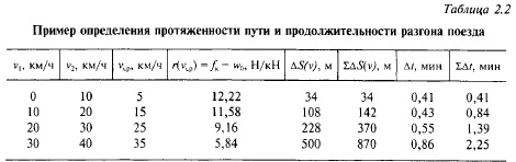 Ниже, применительно к примеру, рассмотренному в п. 2.2, приведен пример определения протяженности пути разгона поезда на площадке при трогании с места и до скорости 40 км/ч, а также продолжительности этого разгона. Результаты расчета приведены в табл. 2.2, а зависимости v(j) и t(S)