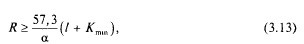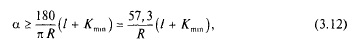Минимальную длину участка круговой кривой Kmm между точками НКК и ККК, рекомендуют принимать равной наибольшей полной колесной базе экипажа, т.е. около 20 м. Из выражения (3.12) можно определить либо наименьший радиус кривой, который может быть принят при данных угле поворота и длине переходной кривой: