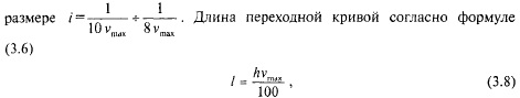Значение dh/dt не должно превышать 40-45 мм/с. При нормировании длин переходных кривых в СТН Ц-01-95 величину dh/dt приняли в пределах 28—35 мм/с (1/10—1/8 км/ч). Тогда в соответствии с формулой (3.7) уклон отвода возвышения наружного рельса в зависимости от скорости наиболее быстроходного поезда в данной кривой vmax, км/ч, определяют в ![]() ![]()