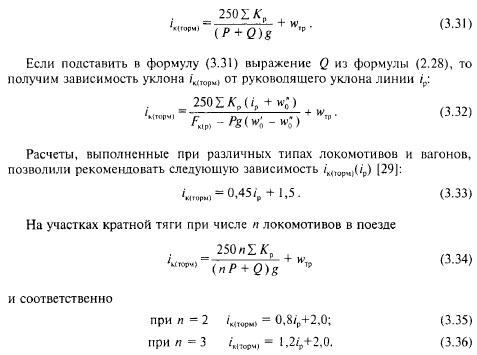 Из неравенства (3.30) находим наибольшую крутизну уклона, %>с, обеспечивающего удержание поезда расчетной массы Р + Q вспомогательным тормозом локомотива: