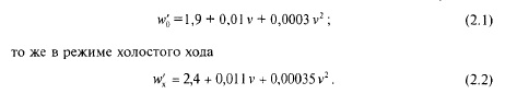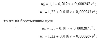 Для условий движения по бесстыковому пути ввиду отсутствия потерь кинетической энергии от ударов на рельсовых стыках значения коэффициентов при v и v2 меньше чем в формулах (2.1) и (2.2):