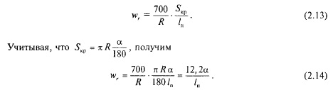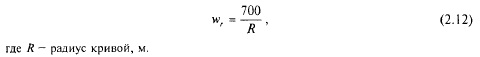 В более точных расчетах при определении wr учитывают, кроме радиуса кривой, непогашенное ускорение в кривой тк, м/с2, определяющее силу прижатия колеса к рельсу: