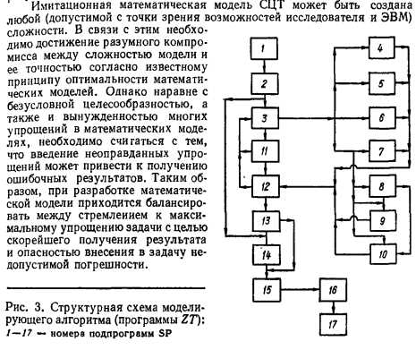ИМИТАЦИОННАЯ МАТЕМАТИЧЕСКАЯ МОДЕЛЬ СИСТЕМЫ ЦЕНТРАЛИЗОВАННОГО ТЕПЛОСНАБЖЕНИЯМатематическая модель СЦТ в общем виде представляет собой совокупность: целевой функции удельных приведенных затрат на тепловую энергию ![]() схемы связей в виде матрицы инциденций дуг ориентированного графа, соответствующего принципиальной схеме, изучаемой СЦТ. Здесь 0О — совокупность факторов; о>0 — совокупность качественных независимых переменных, характеризующих структуру и схему СЦТ; ХШо, УШо— соответственно независимые (параметры) и зависимые количественные переменные; — совокупность уравнений балансового вида для всех узлов схемы СЦТ (вершин графа); Ущ, У®1 — диапазон возможных значений зависимых количественных переменных (знак означает нижний, а — верхний предел); Хщ — ограничения на независимые количественные переменные (параметры). Математическая модель СЦТ в самом общем виде (37) — (40) характеризуется невыпуклостью целевой функции и ограничений. Для подобного класса оптимизационных задач на графах в настоящее время не существует строгих методов, которые гарантировали бы достижение глобального минимума функции многих переменных при наличии ограничений. Следовательно, подобную математическую модель целесообразно использовать не для непосредственной оптимизации параметров СЦТ, а для расчета значений целевой функции гт при любых допустимых значениях влияющих факторов и параметров, т. е. в качестве имитационной (расчетной) модели. Для этого необходим алгоритм решения системы уравнений математического описания, который называется моделирующим, поскольку позволяет осуществить собственно процесс математического моделирования. Построим, например, имитационную математическую модель СЦТ, по степени подробности отвечающую основным положениям к схеме теплоснабжения. Для решения системы нелинейных алгебраических и трансцендентных уравнений математического описания моделирующий адгоритм для предпроектных расчетов разработан в виде структурных схем и программ для ЭВМ, которые определяют последовательность расчета значений целевой функции гт [78]. Отлаживают программы с помощью тестов, которые предусматривают получение в результате работы программы значений целевой функции и зависимых переменных при некоторых детерминированных наборах исходных данных и сравнение полученных значений с эталонными результатами ручного счета. ![]() Функциональная схема моделирующего алгоритма имитационной математической модели СЦТ для предпроектных расчетов (управляющая программа ZT) объединяет 17 подпрограмм с указанием их возможных связей в процессе работы программы [78] и показана на рис. 3. Схема моделирующего алгоритма представляет собой его графическую запись в виде ориентированного направленного графа, все элементы которого являются операторами [45]. Вместе с условными обозначениями она является исчерпывающим описанием алгоритма. Структурные схемы должны быть выполнены в соответствии с основными требованиями ГОСТ 19.002—80 и ГОСТ 19.003—80. Они представляют собой аналитическое решение в явном виде систем уравнений математического описания. Расчетные цепочки строятся от потребителей теплоты к источникам с учетом обеспечения минимального числа внутренних итераций. Расчет годовых показателей отпуска тепловой и электрической энерги