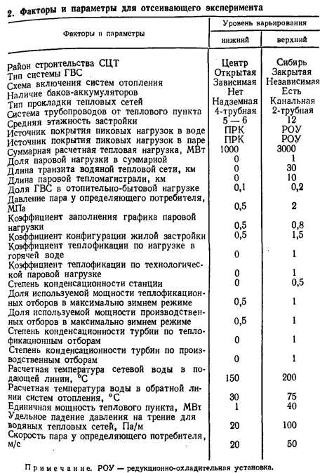 ОПРЕДЕЛЕНИЕ СУЩЕСТВЕННОСТИ ФАКТОРОВ И ПАРАМЕТРОВ С ПОМОЩЬЮ ОТСЕИВАЮЩИХ ИМИТАЦИОННЫХ ЭКСПЕРИМЕНТОВ И ИНЖЕНЕРНОГО АНАЛИЗАРазделение факторов и параметров, влияющих на экономичность СЦТ, на более или менее существенные возможно только за счет сочетания глубокого инженерного анализа с применением современных математических методов и ЭВМ. В гл. 2.2 обоснован поэтапный подход к решению указанной задачи, а также возможность применения математической теории эксперимента. Рассмотрим этап предварительного разделения влияющих факторов и параметров с помощью инженерного анализа на три класса: существенные, несущественные и подозреваемые на существенность. В результате инженерного анализа проектных разработок, инструкций и публикаций к априорно существенным с точки зрения перспективного проектирования СЦТ в целом отнесены такие факторы, как начальные параметры пара для ТЭЦ, тип базового источника теплоты, состав основного оборудования и вид сжигаемого топлива, коньюнктурный уровень капиталовложений во все звенья СЦТ и замыкающих затрат на топливо, тип системы транзитных тепловых сетей (двух- или однотрубная). Априорно несущественными приняты такие факторы и параметры, как температура сетевой воды в подающей и обратной линиях в неотопительный период, способ регулирования отпуска теплоты для водяных СЦТ, коэффициент теплопередачи для тепловых сетей и водяных теплообменников и др. После инженерного анализа для постановки отсеивающих экспериментов принято 29 подозреваемых на существенность факторов и параметров (табл. 2), из которых 9 качественных и 20 количественных. Среди них особого пояснения требуют лишь специально введенные коэффициенты, характеризующие степень конденсационности турбин по теплофикационным и производственным отборам, а также по станции в целом. ![]() Первые два коэффициента характеризуют долю тепловых мощностей турбин, отнесенных к теплофикационным и производственным отборам, соответственно, которая может быть использована при работе по конденсационному режиму (т. е. обеспечена соответствующей низкопотенциальной частью)! Степень конденсационности станции определяется как отношение части тепловой мощности турбин, работающей по чисто конденсационному циклу, к сумме расчетных тепловых мощностей всех турбин, работающих на данной станции. Закрытая система ГВС представлена двухступенчатой последовательной схемой с регулированием отпуска тепла по повышенному графику, а открытая двухтрубная — соответственно по скорректированному. В обоих случаях расход сетевой воды равен отопительному [55]. В качестве базового источника теплоты принята угольная ТЭЦ с начальным давлением пара 13 МПа и его давлением в конденсаторе 0,004 МПа. Пиково-резервные котельные рассматриваются на газомазутном топливе. Матрица планирования принята по симметричному двухуровневому плану из 32 опытов [59], а векторы экспериментальных значений удельных приведенных затрат на тепловую энергию для двух серий опытов, отличающихся уровнем замыкающих затрат на топливо (во второй серии они в 1,5 раза выше), получены с помощью имитационной математической модели СЦТ в виде программы ZT на ЭВМ [78]. Проверка нормальности выборок, полученных в результате двух серий отсеивающих экспериментов, векторов удельных приведенных затрат на тепловую