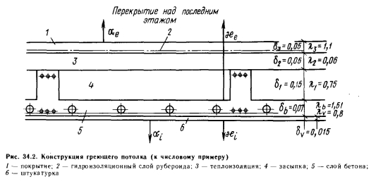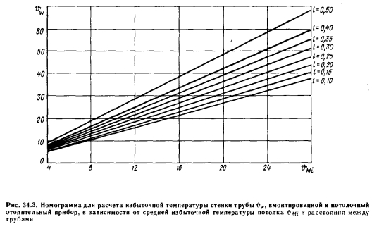 Расчет, основанный на использовании зависимостей двухмерной теплопроводностиПрименяя зависимости двухмерной теплопроводности, обычно можно получить более точные результаты, чем при вычислениях, основанных на линейной теплопроводности. Точность вычислений не зависит от толщины бетонного слоя, поскольку средняя температура устанавливается для плоскости расположения труб (плоскости у = 0), а не для всего бетонного слоя. Порядок вычислений в общих чертах мало отличается от порядка, которому следуют, .когда за основу берут линейную теплопроводность. На первом этапе вычисляют теплопотери Qlr, как и в п. 34.1. ![]() Полученные значения уменьшают на 10% и считают исходными теплопотерями. Затем, начиная с предпоследнего этажа, увеличивают исходные теплопотери на 1 % на каждый этаж, учитывая тем самым воздухообмен в лестничной клетке за счет естественного гравитационного давления. Второй этап аналогичен описанному в п. 34.1, т. е. вычисления и здесь начинаются с первого этажа. На третьем этапе устанавливают количество теплоты, которое должно быть отдано через единицу поверхности потолка: ![]() На четвертом этапе (см. рис. 7.9) определяют необходимые для расчета коэффициенты теплопередачи: ![]() ![]() Из зависимостей (34.22), (34.24) и (34.25) видно, что задачу можно решить и при увеличенном в несколько раз расстоянии между трубами. Вычисления в этом случае необходимо провести с предполагаемыми значениями /, обычно составляющими 25—50 см. Значения Sc и S, можно взять из рис. 7.10 и 7.11, задаваясь принятым расстоянием между трубами. На шестом этапе устанавливают длину трубы на основании зависимости ![]() Существенно упрощаются расчеты при использовании заранее построенных номограмм. Их подготовка целесообразна еще и потому, что в настоящее время строят много зданий, в которых используют одинаковые конструктивные решения, и поэтому номограммы могут найти широкое применение. Эти номограммы получают тем же способом, который описан в п. 34.1. Задаваясь значениями Qm и зная конструктивное устройство, можно вычислить все необходимые данные для построения номограммы. На основании зависимостей (34.22), (34.24) и (34.25) была построена номограмма (рис. 34.3), по которой, зная значение QMb получающееся в соответствии с третьим этапом расчета, для различных расстояний между трубами / можно определить Сопоставление рис. 34.1 и 34.3 показывает, что при расстоянии между трубами 0,10—0,30 м и толщине бетонного слоя 6—7 мм можно применять любой из методов расчета. ![]() |