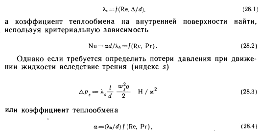Гидродинамические характеристики и теплообмен на внутренней поверхности масляных отопительных приборовДифференциальные уравнения, служащие для аналитического описания скорости, давления и температуры текущей жидкости, не зависят от свойств теплоносителя, поэтому необходимый для определения потерь давления коэффициент трения можно представить в виде ![]() |