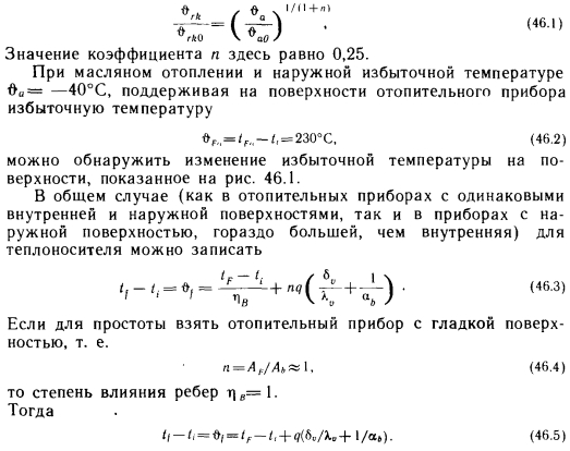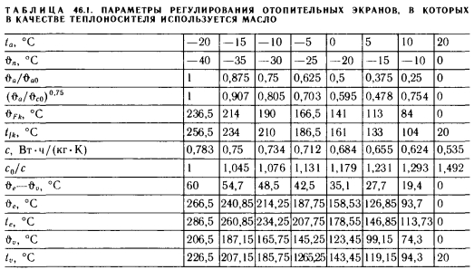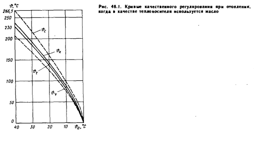 Температурное регулированиеВыше уже рассматривалось, как определить изменение температуры при использовании воды в качестве теплоносителя. Однако следует упомянуть о том, что здесь нужно считать одинаковыми температуру поверхности отопительного прибора и температуру теплоносителя. Теплоотдача отопительных приборов зависит от избыточной температуры их поверхности Qrk и не зависит от качества теплоносителя. Изменение средней температуры прибора в зависимости от избыточной наружной температуры $а может быть выражено уравнением ![]() ![]() Расчеты показывают, что при использовании отопительного прибора в виде радиатора, действующего на горячей воде, где <7 = 465 Вт/м2 и сх = 1163 Вт/(м2-К), избыточная температура теплоносителя отличается на 0,4°С от ftF=tF—В этом случае средняя температура радиатора .может быть принята равной температуре проходящего в нем теплоносителя. Совсем иное положение при использовании масла. Здесь, например, при разности температуры $F=tF—ti = 230°С <7 = 2500 Вт/м2,а аь составляет лишь приблизительно треть значения, действительного для воды. Если коэффициент а(, известен, то ![]() Здесь сразу следует заметить, что при наружной температуре 12°С средняя избыточная температура масла составляет frf = 72°C, а температура = 92°С. Согласно таблицам, расход масла при средней температуре 250—1000°С практически не изменяется. Это облегчает расчет температуры подаваемого в прибор и уходящего из прибора масла, так как здесь действительно уравнение откуда при m = m0 ![]() На основании этой зависимости были вычислены две последние строки табл. 46.1, а также построены на рис. 46.1 кривые изменения температуры подаваемого (te) и уходящего из прибора (tv) масла. ![]() Все это говорит о том, что при данных температурных соотношениях величины, вычисляемые с учетом т = const, практически верно отражают действительное положение, т. е. для отопительной установки, работающей на масле в качестве теплоносителя, можно осуществлять температурное регулирование. |