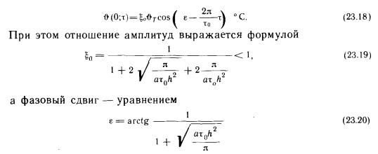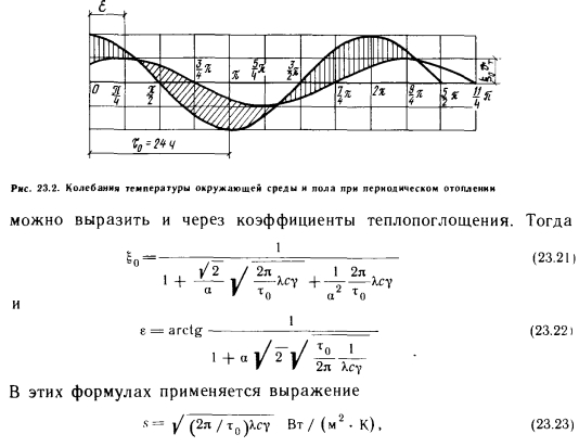 Теплообмен поверхности пола при периодическом режиме работы системы отопленияДля упрощения задачи периодические изменения температуры окружающей среды с амплитудой около какой-то средней температуры можно выразить зависимостью (23.9). Эти колебания будут вызывать отстающие на фазу е колебания температуры поверхности пола с амплитудой ?oftr, т. е. изменение температуры поверхности пола можно описать зависимостью ![]() Следует упомянуть о том, что ат/г2 можно представить в виде произведения безразмерных чисел, характерных для нестационарного теплового потока, Fo = ax/x2 и Bi = hx. Эти зависимости ![]() ![]() Если же теплопоглощающая способность уменьшается, то коэффициент стремится к единице, а величина е к 0. В этом случае температурные колебания поверхности пола равны температурным колебаниям окружающей среды, а теплообмен прекращается. На практике коэффициент для пола довольно велик (в первую очередь в связи с необходимостью обеспечения прочности), и поэтому количество теплоты, поглощаемой полом во время отопления и отдаваемой во время перерыва в его работе, следует обязательно учитывать. Таким образом, при отоплении зданий павильонного типа надо придавать должное значение сохранению теплоты, накапливающейся в полу, в частности, учитывать необходимое время начала отопительного сезона. Поскольку при постоянном отоплении количество теплоты, поступающей в пол, постоянно уменьшается, в этом случае следует ограничиваться компенсацией теплопотерь пола, в то время как при периодическом отоплении нужно учитывать ночную отдачу полом саккумулированной днем теплоты, что уменьшает охлаждение здания павильонного типа и снижает тепловую мощность системы отопления. |