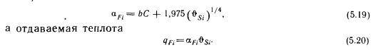 Теплопоступление от отопительных приборов, расположенных в вертикальной плоскостиОтопительный прибор может быть размещен как в перегородке, так и в наружной стене. Для обозначения стены используется индекс F. При таком расположении отопительного прибора коэффициент конвективного теплообмена также довольно высокий. В направлении стороны, обозначенной индексом ![]() ![]() Теплота, отдаваемая с другой ограничивающей плоскости тела (стены), обозначенной индексом е, равна ![]() Значения aF и qF приведены на рис. 5.4. Если наружную стену или потолок использовать в качестве отопительного прибора, то из-за большого количества теплоты, идущей наружу, может значительно увеличиться теплопотребность помещения. Для ее уменьшения эти ограждающие конструкции снабжают хорошей теплоизоляцией. |