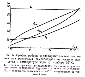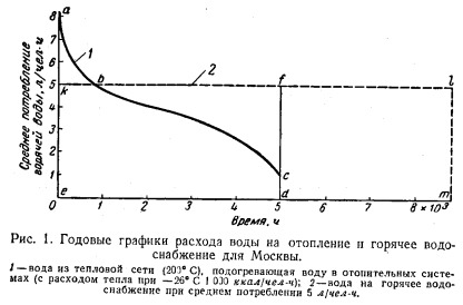 ОДНОТРУБНЫЕ СИСТЕМЫ ТЕПЛОСНАБЖЕНИЯВ отдельных районах больших городов, которые временно не могут быть охвачены теплофикацией, строятся районные котельные, рассматриваемые как опорные пункты теплофикации [Л. 1 и 2]. Топливом для крупных котельных во избежание загрязнения атмосферы городов выбирается преимущественно газ. Исследования показывают, что использование тепла уходящих газов в крупных котельных целесообразно до температуры 25—30° С в контактных камерах охлаждения газов свободно падающими потоками воды. Вода после контактных камер по данным АКХ и санинспекций Москвы и Ленинграда, удовлетворяет всем сантехническим нормам горячего водоснабжения и не отличается по качеству от водопроводной воды. При охлаждении уходящих газов до 25—30° С содержащиеся в них пары воды (около 1,63 кг на 1 hms природного газа) конденсируются, а общее использование тепла в котельной возрастает на 25—40%. Топливо используется по его высшей теплотворной способности, вследствие чего такие котлы экономичнее по сравнению с самыми лучшими водогрейными котлами (например, типа ПТ>В) в среднем на 22—25 %. Тепловые сети от таких котельных могут быть однотрубными, рассчитанными на температуру воды до 200° С. Такие сети весьма экономичны и дают возможность использовать для целей горячего водоснабжения тепло уходящих из котлов газов. ![]() Решая проблему горячего водоснабжения городов и их районов, необходимо учитывать, что к 1980 г. нормы общего водопотребления по СССР [Л. 3] ожидаются 350—400 л/чел-сутки при мощности водопровода 650— 660 л/чел-сутки. Определяя потребность в горячей (65° С) воде, следует исходить из того факта, что ее расход в новых домах превышает потребление неподогретой водопроводной воды на 20—30%. Расчеты показывают, что при постоянной температуре 200° С количество воды, поступающей в тепловую сеть за отопительный сезон на отопление жилых зданий в Москве, в 1,5 раза меньше (рис. 1) ее количества, необходимого для горячего водоснабжения (по известной проектной норме расхода горячей воды в новых домах 120 л/чел-сутки). Планируемая на 1965 г. кубатура зданий 54 м3/чел соответствует максимальному расходу тепла на отопление 24 ООО ккал/чел-сутки. При постоянном расходе воды в тепловой сети (качественное регулирование) и ее расчетной температуре 150° С количество воды, циркулирующей в тепловой сети Москвы, должно быть больше 50 м3/чел. При температуре воды 200°С расход воды согласно рис. 1 сокращается до 15 м3/чел и становится значительно меньшим потребности в горячей воде на бытовые нужды, составляющей примерно 23 м3/чел в отопительный сезон. Из этих соображений при подаче тепла потребителю от любых источников тепла нужны только однотрубные водопроводные тепловые сети (200 В»). Отопление получается за счет воды, идущей на горячее водоснабжение. Оценка тепловых потерь по стоимости топлива показывает, что однотрубные тепловые сети 200 В» от ТЭЦ получаются абсолютно рентабельными при любой нагрузке горячего водоснабжения. Прокладка обратных труб от ТЭЦ невыгодна, так как летом они лежат в земле холодными и корродируют, а зимой при разборах воды на горячее водоснабжение всего несколько часов в сутки должны собирать остатки теплой воды, не используемой в системе горячего водоснабжения. На многих ТЭЦ циркуляционная вода после конденсаторов турбин сливается при температуре 20—30