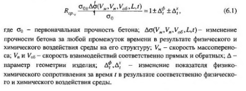 Таким образом, физико-химическое сопротивление материала в общем случае характеризует его внутренние ресурсы, способные обеспечивать силу и продолжительность физико-химических процессов, направленных на ослабление воздействия и сохранение материала. Даже при быстрой реакции составляющих бетона с агрессивной средой его физико-химическое сопротивление может быть значительным, если образующиеся при взаимодействии продукты способны уплотнять и упрочнять структуру материала. Такое понимание сущности сопротивления позволяет целенаправленно изыскивать сохраняющие материал процессы в дополнение к тем, которые существуют объективно. |
