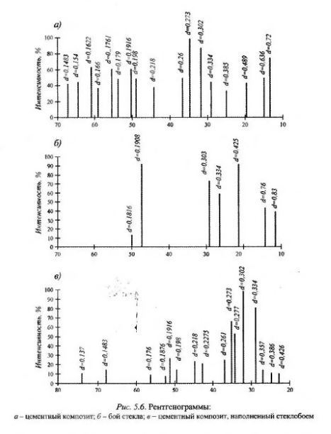 К настоящему времени накоплен значительный исследовательский материал, посвященный наполненным бетонам, в которых представлен опыт применения минеральных добавок, приведены данные теоретических и экспериментальных исследований по структурообразованию, свойствам и технологии получения бетонов содержащих в своем составе наполнители различного вида и природы. Наполнители вместе с цементом участвуют в формировании микроструктуры матричной основы и контактных зон композита. Преимущество структуры цементной матрицы с наполнителем состоит в том, что в ней локализуются внутренние дефекты — микротрещины, макропоры и капиллярные поры, а также в том, что уменьшаются их количество и размеры, снижается концентрация напряжений. Влияние наполнителя на структурообразование композиционных материалов на сегодняшний день рассматривается в двух аспектах: как собственно твердого тела, имеющего определенные электронную и кристаллическую структуру и свойства и как твердого тела, оказывающего в соответствии со своей природой кислотно основное или окислительно восстановительное воздействие. Уровнем реализации первого аспекта является граница раздела фаз и осуществление такого рода взаимодеиствия на микроуровне приводит к повышению прочностных и деформативных свойств. Каталитическое воздействие наполнителя затрагивает передачу электронной пары или носителей зарядов, результатом чего является изменение механизма реакции гидратации и соответственно ее скорости. Так, применение в цементных материалах карбонатных добавок способствует ускорению кристаллизации новообразований и созданию раннего крупнокристаллического скелета. Тонкомолотые добавки известняка и гранита изменяют характер кристаллизации и структурообразования цементного камня. Наблюдается срастание кристаллов по кристаллографическим направлениям, имеющим эпитаксиальное сродство. Использование в качестве наполнителя волокон асбеста в количестве до 15% от массы вяжущего приводит к образованию новых соединений при гидратации композиции. Гидроалюминаты, гидросиликаты и гидрооксид кальция цементного камня взаимодействуют с кислотной поверхностью асбеста, образуя в точках контакта новые субмикрофазы. В последние годы в качестве микронаполнителей в бетонах все шире используют отходы различных промышленных производств, что позволяет решить проблему их утилизации, значительно улучшить экологическую ситуацию в регионах и снизить себестоимость строительных изделии и конструкций. Таким наполнителем может служить бой стекла. Проведенные нами комплексные исследования наполненных цементных композитов были направлены на выявление влияния данного микронаполнителя на формирование структуры и физикомеханические свойства цементного камня. В качестве вяжущего исцользовали портландцемент Алексеевского цементного завода М400 Стеклобой имел следующий химический состав (%):