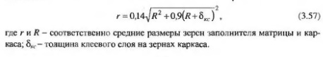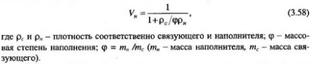 Соотношение размеров наполнителя матрицы и заполнителя каркаса во многом определяется также технологией изготовления каркасного композита. При полной пропитке каркаса размер наполнителя принимается менее 0,63 мм с целью более качественной пропитки и получения композита плотной структуры, при частичной пропитке - менее 2,5 мм с целью создания лучших условий образования прочных клеевых прослоек, связывающих гранулы крупного заполнителя в крупнопористый слой. К пропиточным композициям наряду с высокой прочностью сцепления с поверхностью каркаса и долговечностью в условиях различных агрессивных сред при изготовлении изделий предъявляются требования по прочности и жесткости. В качестве пропиточных матриц пригодны композиции с различной степенью наполнения: V = 0...Vmax. Объемная доля наполнителя в наполненных композициях, определенная из уравнения объемного расхода составляющих компонентов, для каркасных композитов равна: